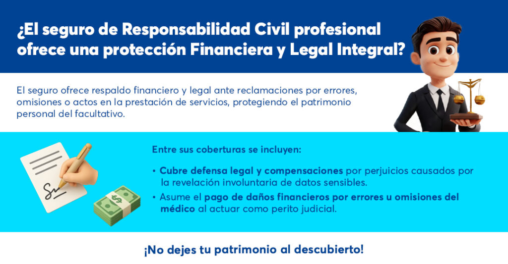 La cobertura actúa cubriendo los costos de defensa legal y las posibles indemnizaciones a las que el profesional pueda ser obligado, proporcionando un margen de seguridad que permite al médico concentrarse en su labor sin la preocupación constante de un litigio.